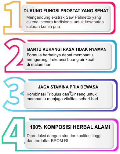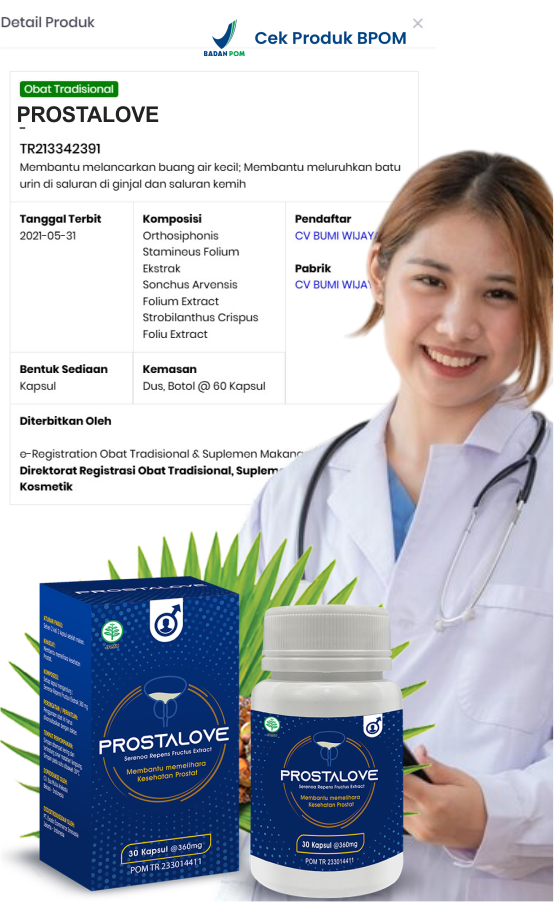 PROSTALOVE SOLUSI HERBAL UNTUK KEBUGARAN PRIA Dukung Kualitas Hidup yang Lebih Nyaman MANFAAT PROSTALOVE YANG HARUS KAMU KETAHUI INIKAH KELUHAN YANG SERING ANDA ALAMI? Perhatikan tanda-tanda berikut pada pria MENGAPA PROSTALOVE MENJADI PILIHAN UTAMA Tubuh Bugar, Hari-hari Lebih Berkualitas Solusi Praktis Untuk Menemani Aktivitas Harian Anda MENGAPA MEMILIH PROSTALOVE Kami berkomitmen memberikan yang terbaik Kualitas Terjamin Keamanan Terbukti Pengalaman Nyata PROSTALOVE SOLUSI HERBAL UNTUK KEBUGARAN PRIA Dukung Kualitas Hidup yang Lebih Nyaman